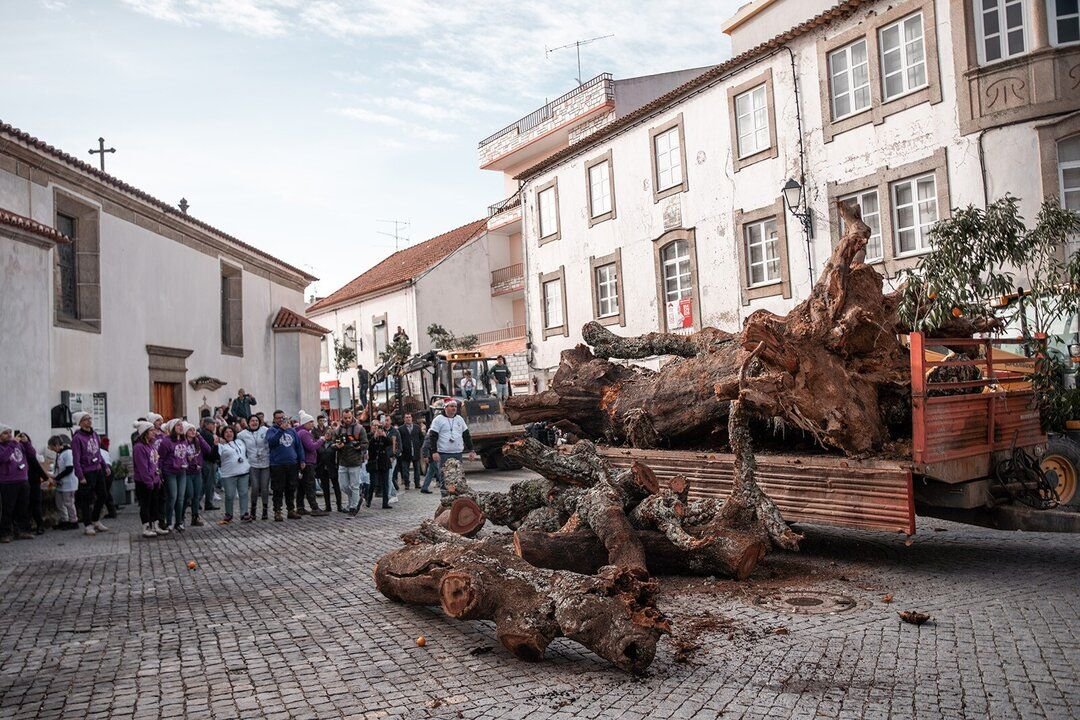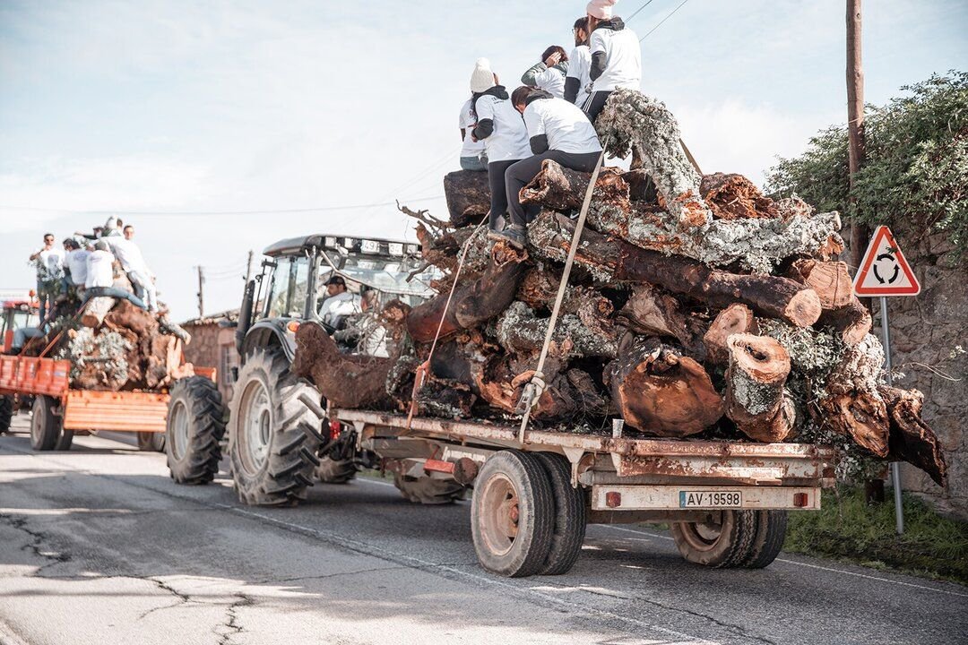 Witness a vibrant rural tradition where communities gather for a festive procession of farm vehicles carrying timber through historic streets. Young locals perched atop the massive wood loads sing traditional songs with accordion accompaniment while celebrating crowds join in this joyful tribute to ancestral agricultural customs.