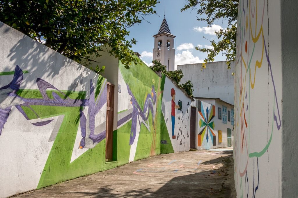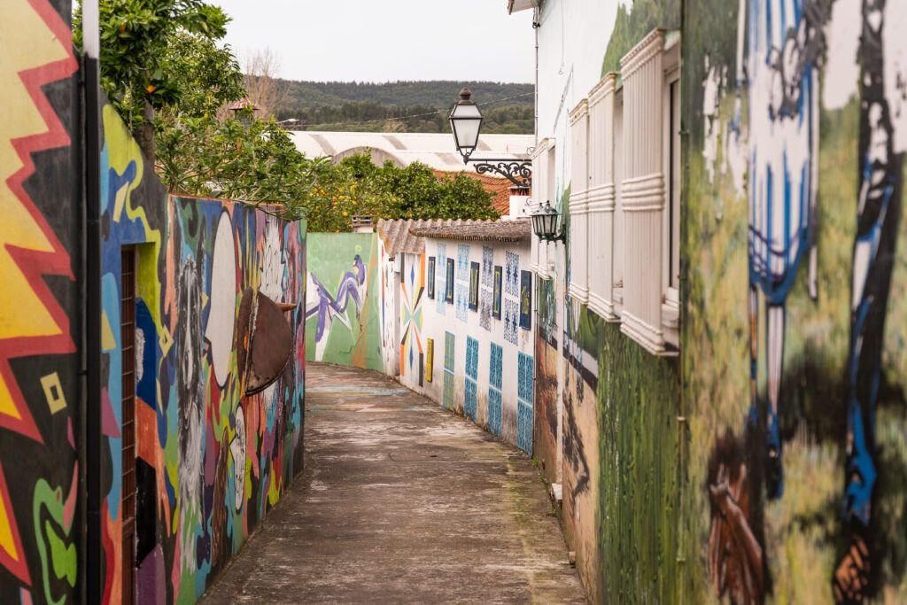 Explore vibrant street murals that have transformed a rural parish into an unexpected open-air gallery. Wander through village streets adorned with colorful large-scale murals that blend contemporary artistic expression with rural Portuguese life, bringing creative energy to this traditional agricultural community through an innovative urban art initiative.